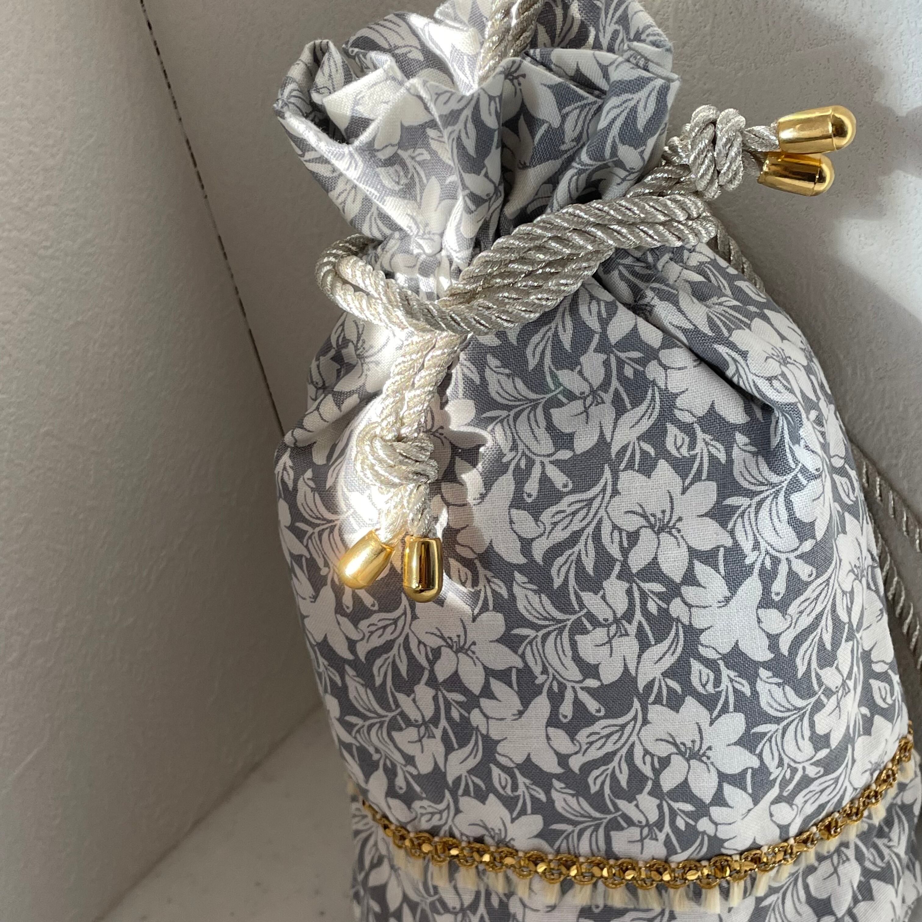 アクセントにゴールドのタッセルレースを施した