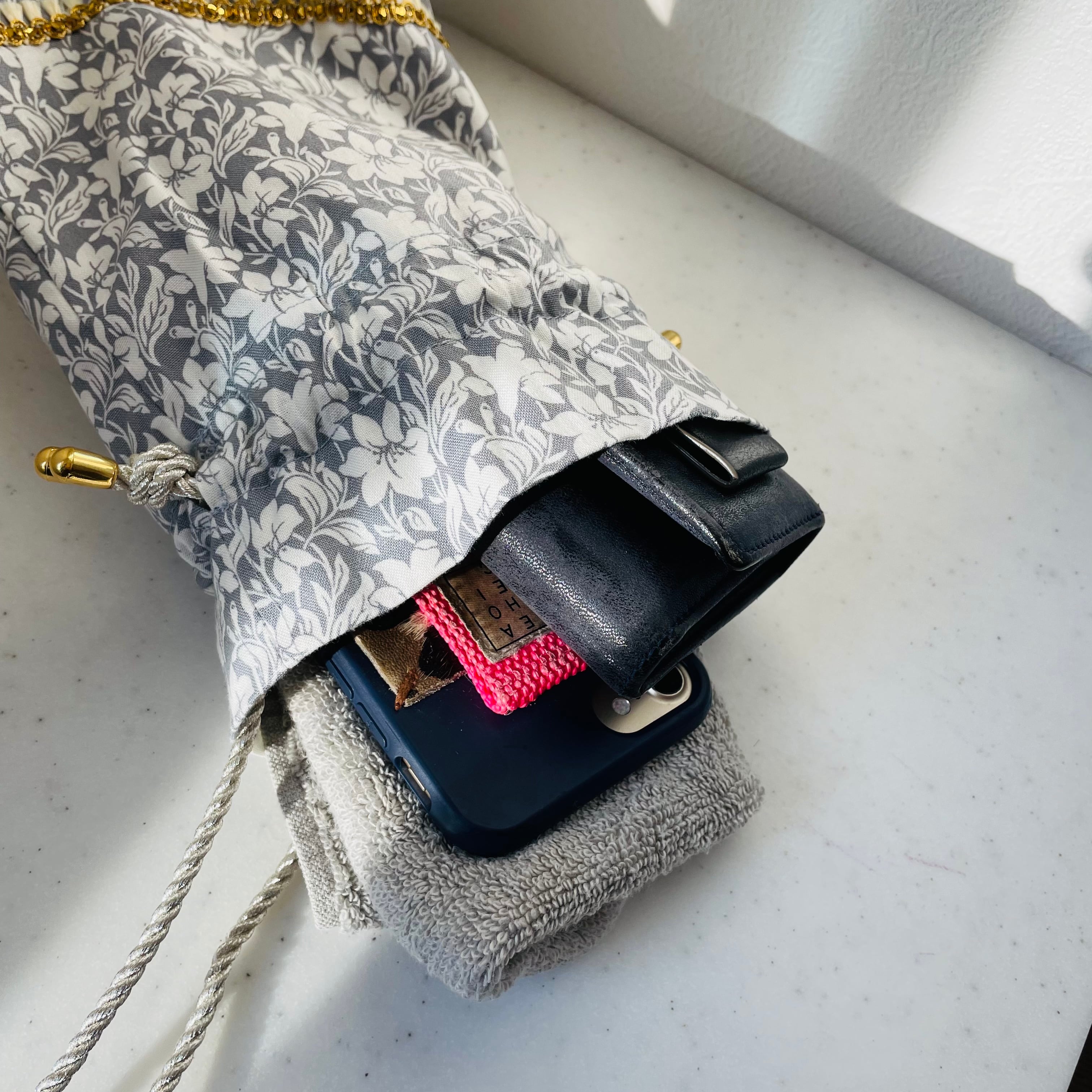 スマホ、ミニウォレットハンカチが十分収まるサイズで