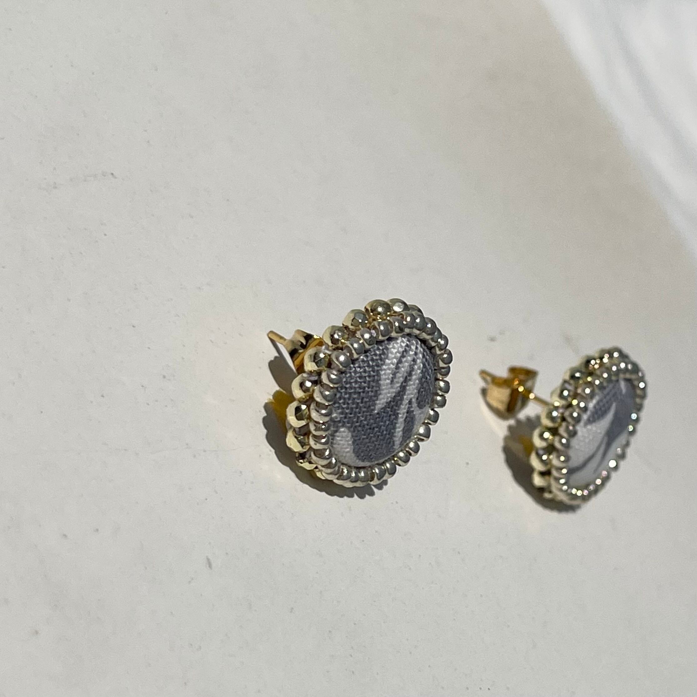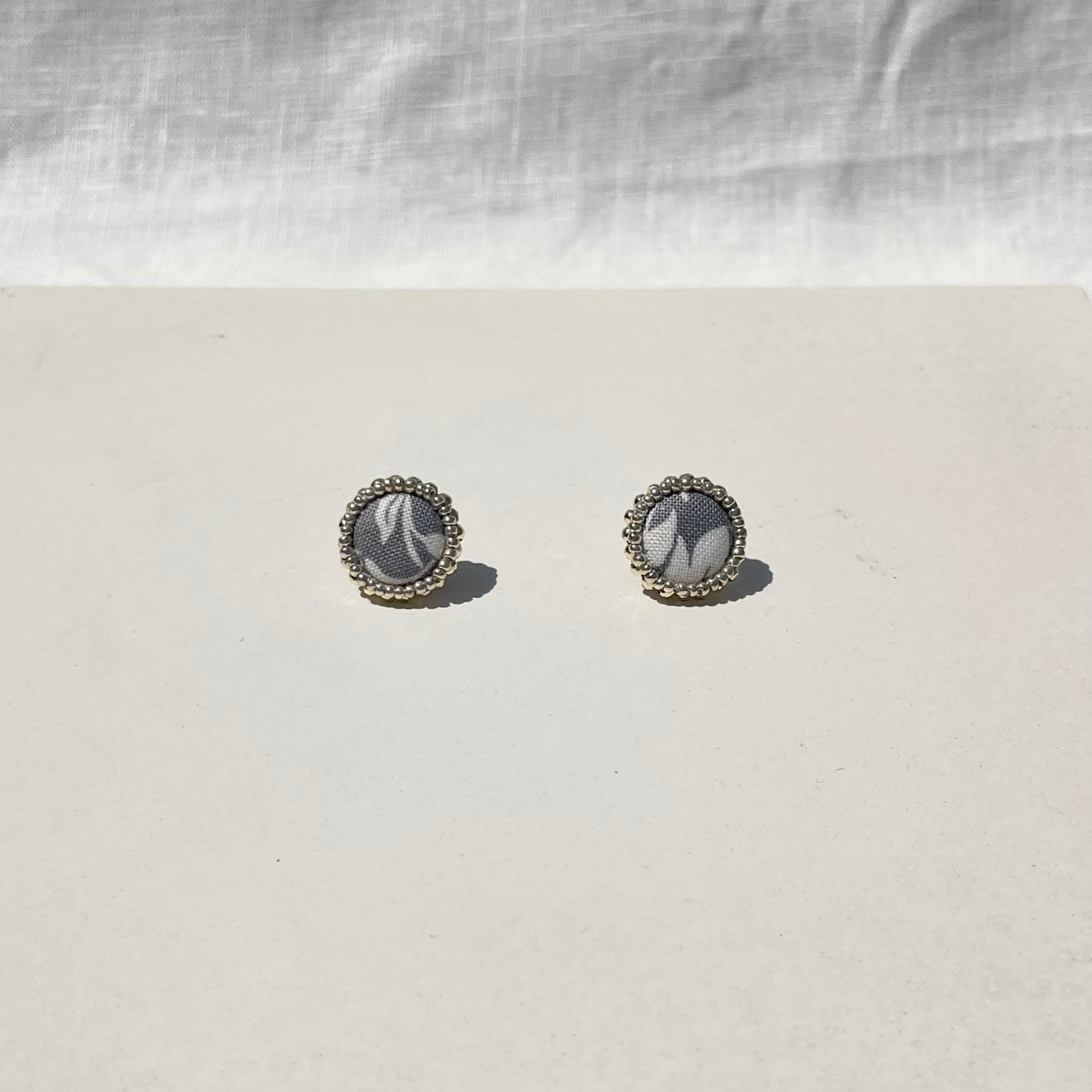 ◇ピアス、イヤリングはファブリックを使用したクルミボタンでアクセサリーを作成しています。