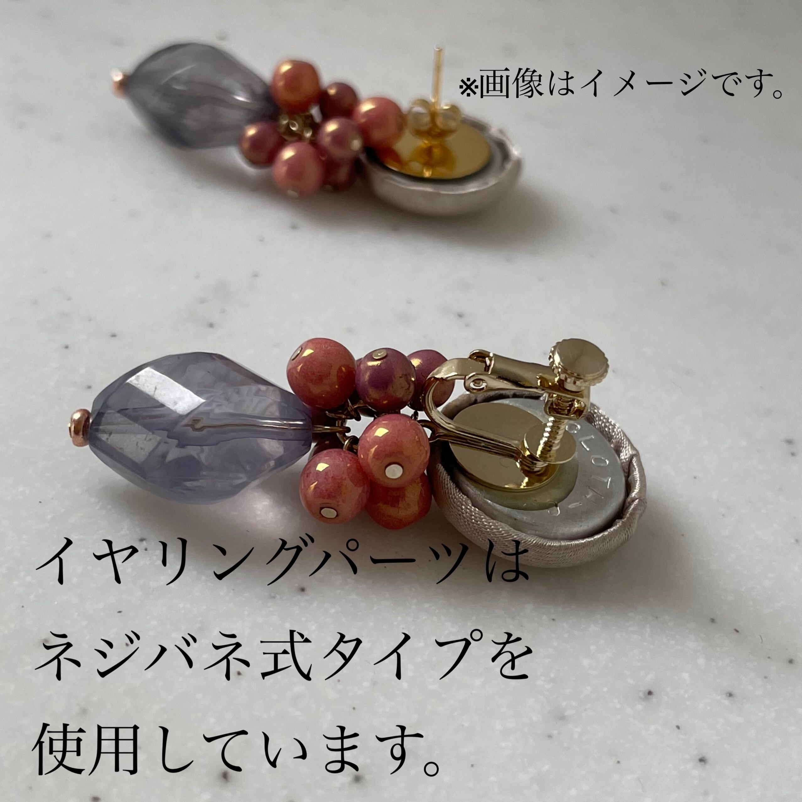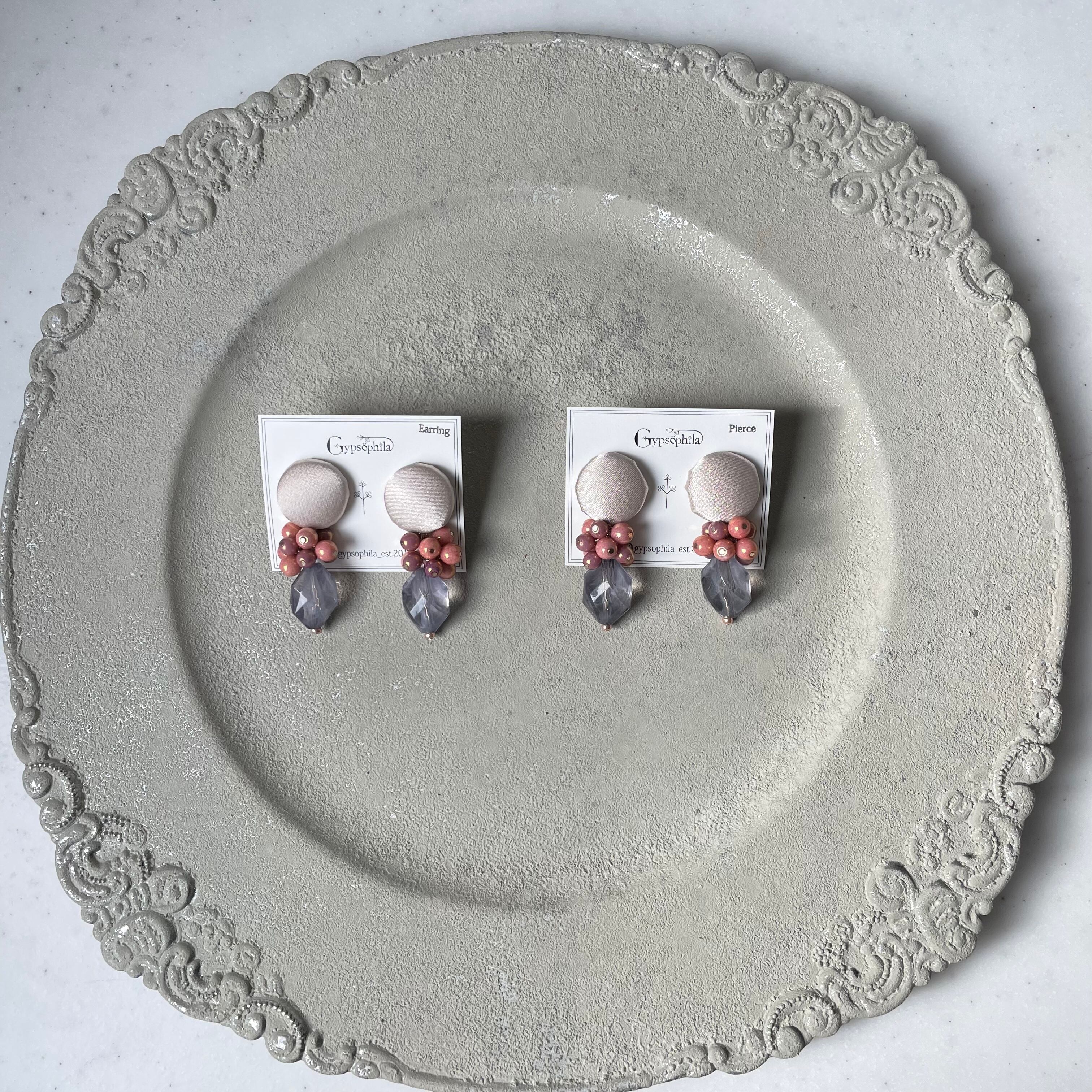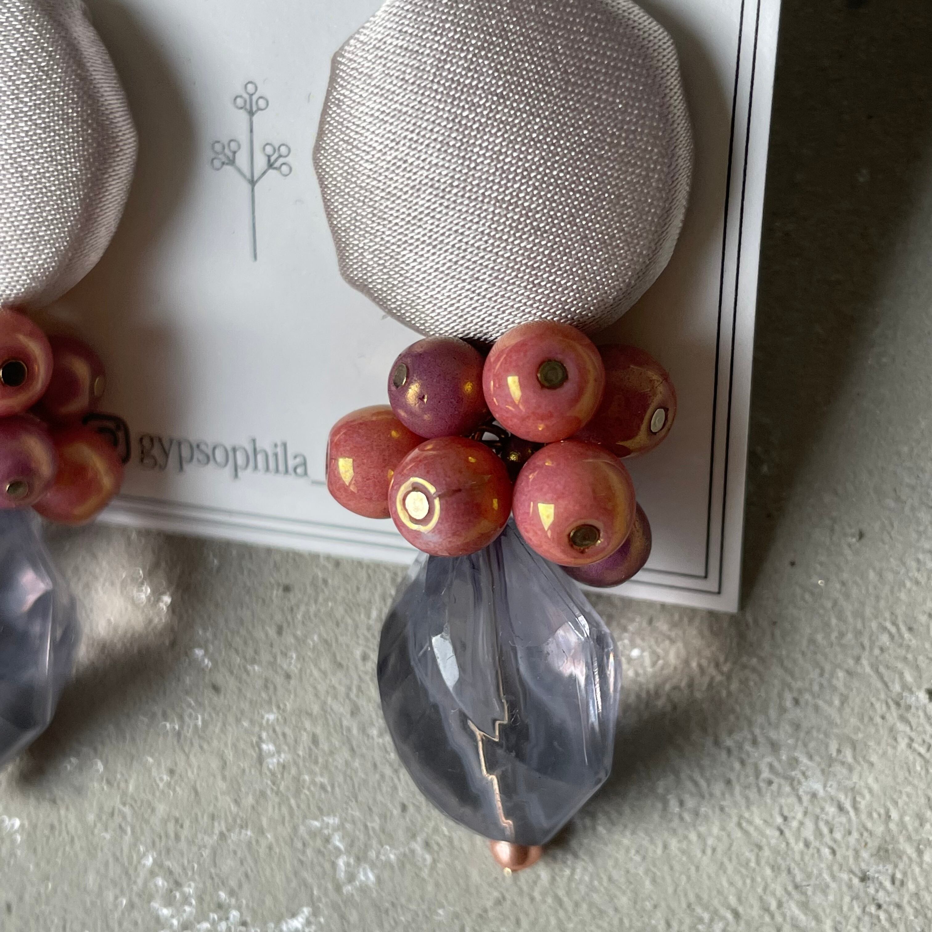 ◇ピアス、イヤリングはファブリックを使用したクルミボタンでアクセサリーを作成しています。