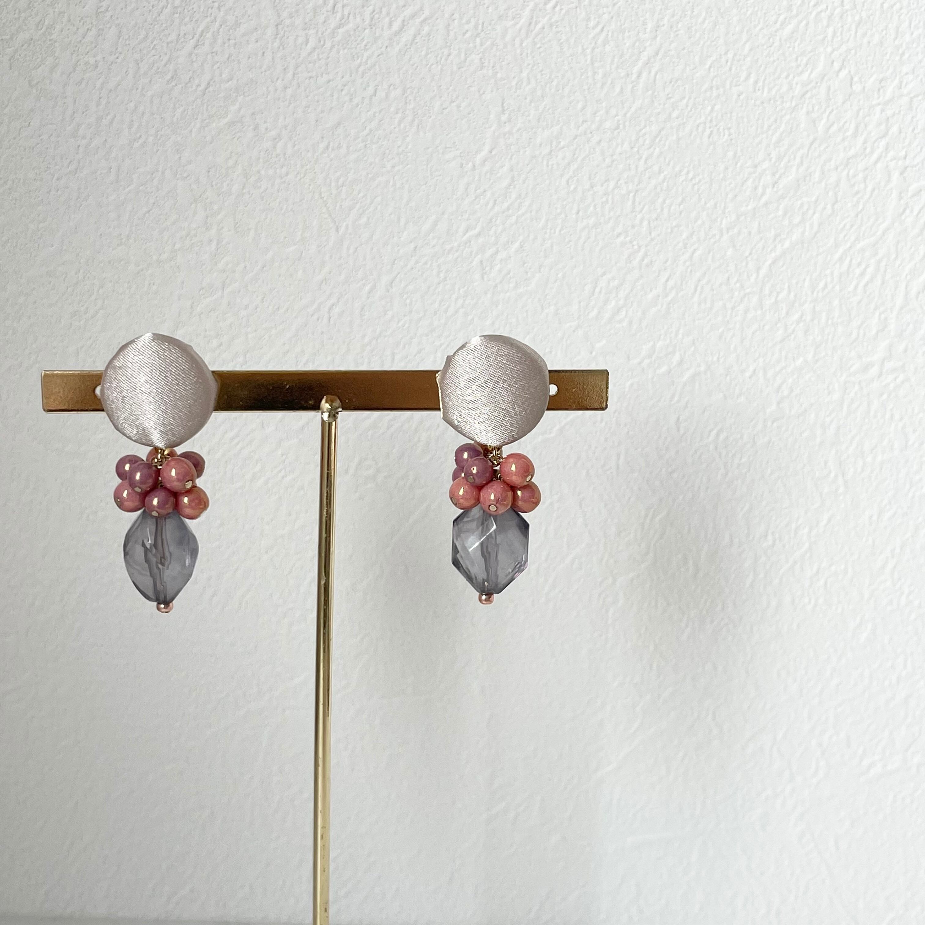 ピンクのビーズとグレイのアクリルビーズを組み合わせてみました。