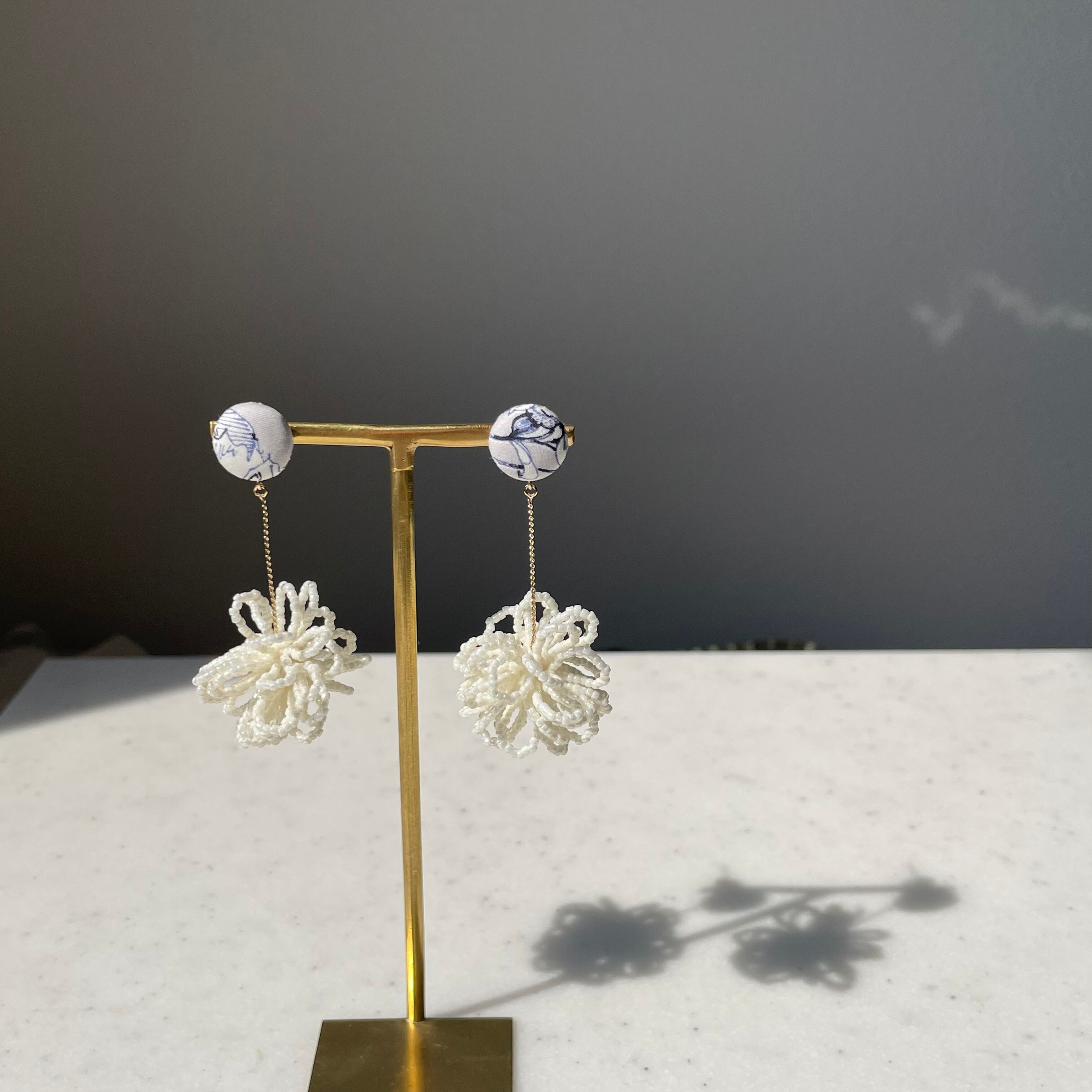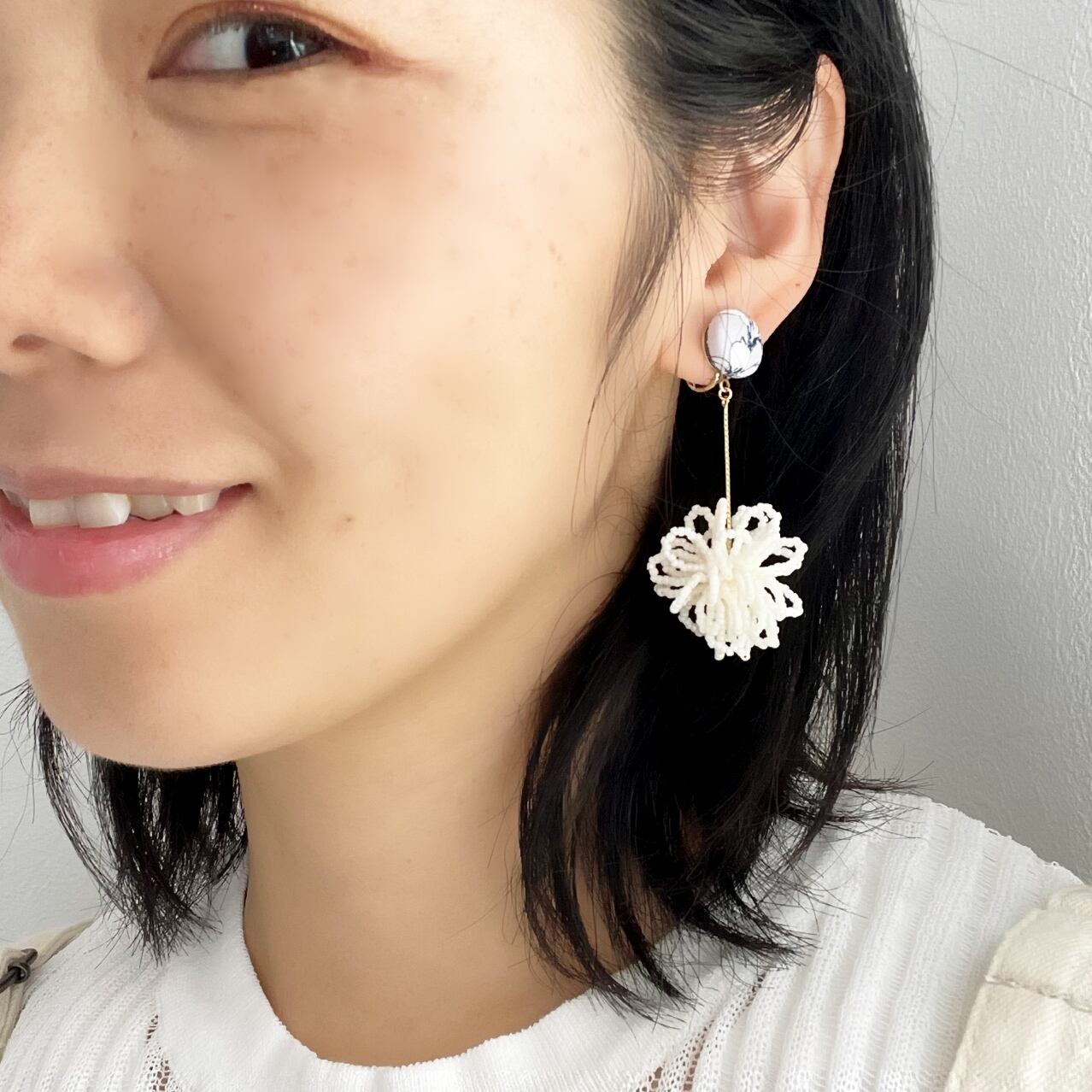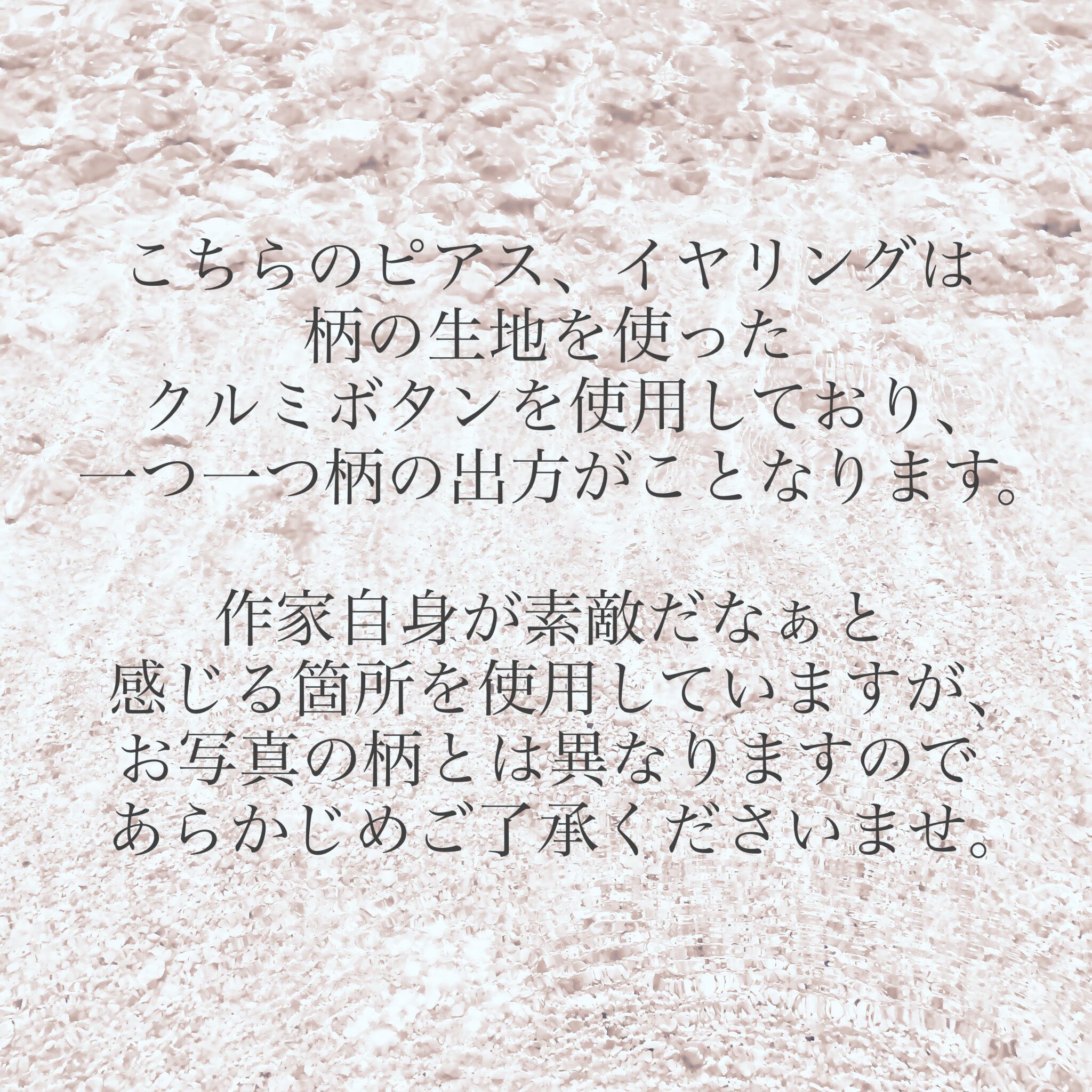 ◇ピアス、イヤリングはファブリックを使用したクルミボタンでアクセサリーを作成しています。