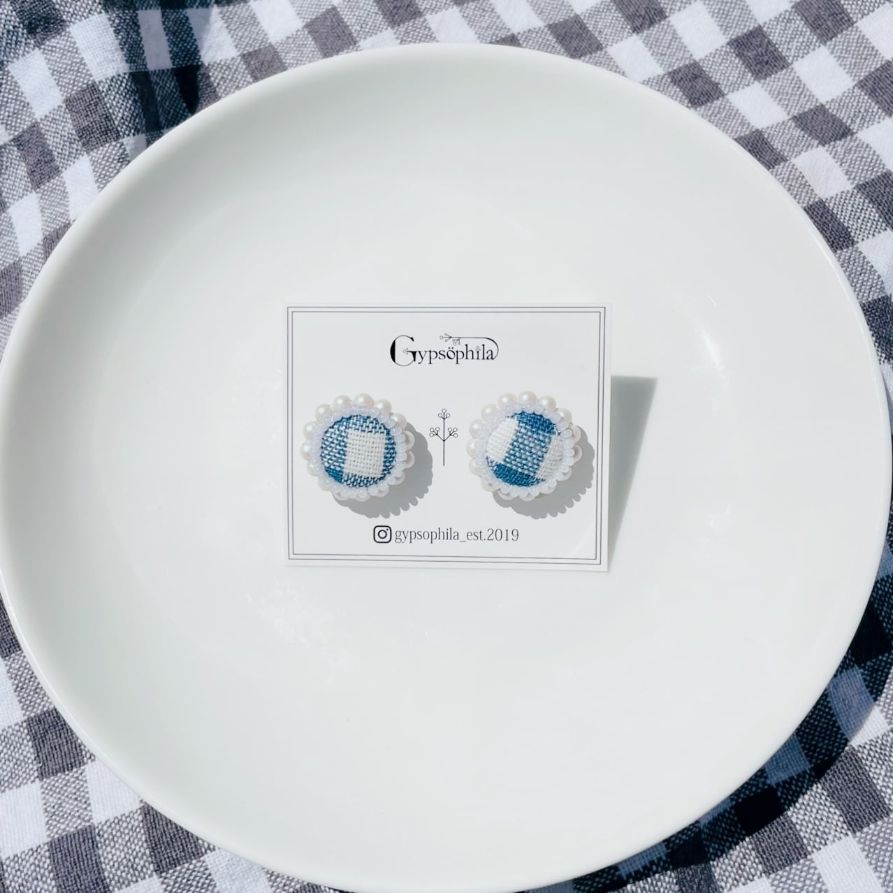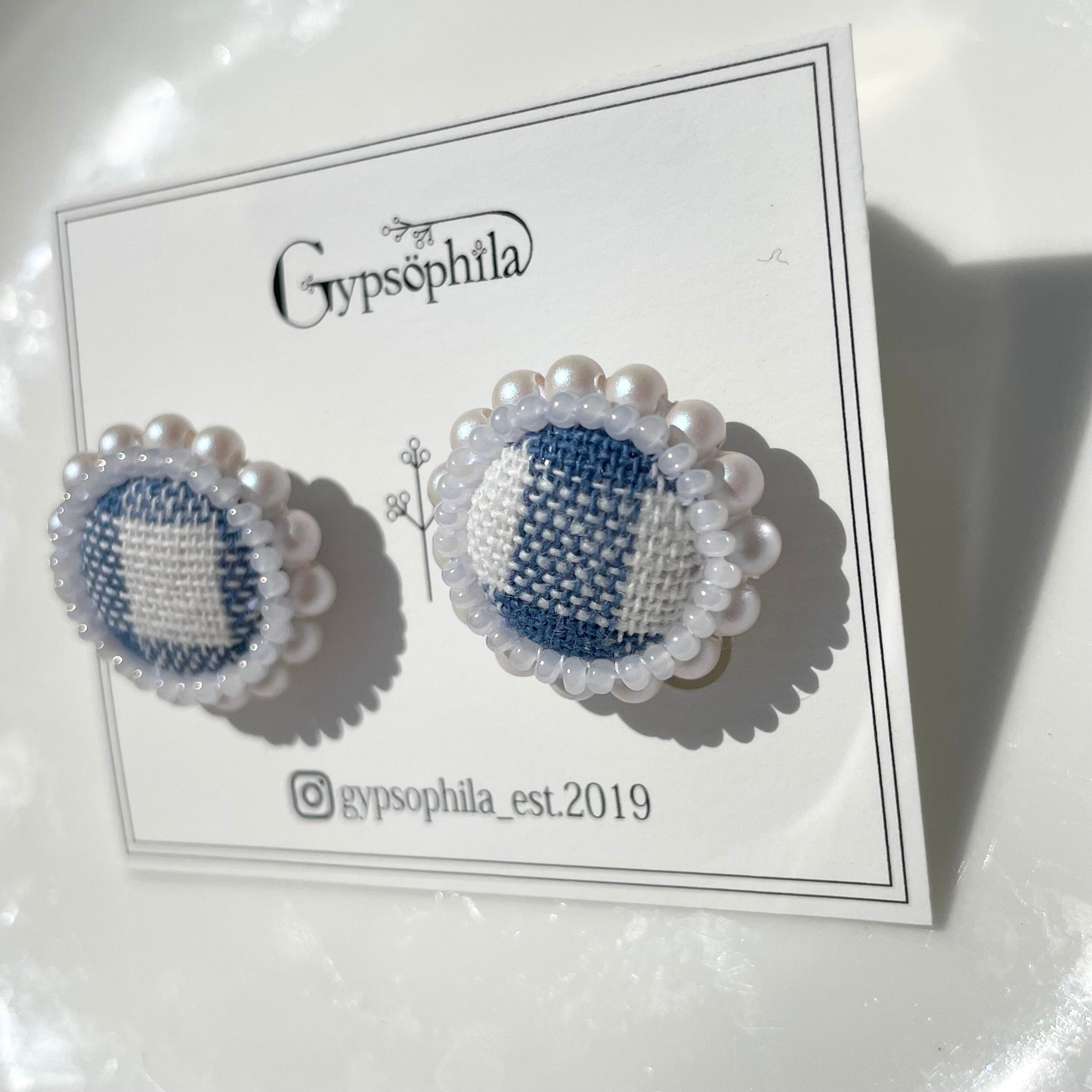 ◇ピアス、イヤリングはファブリックを使用したクルミボタンでアクセサリーを作成しています。