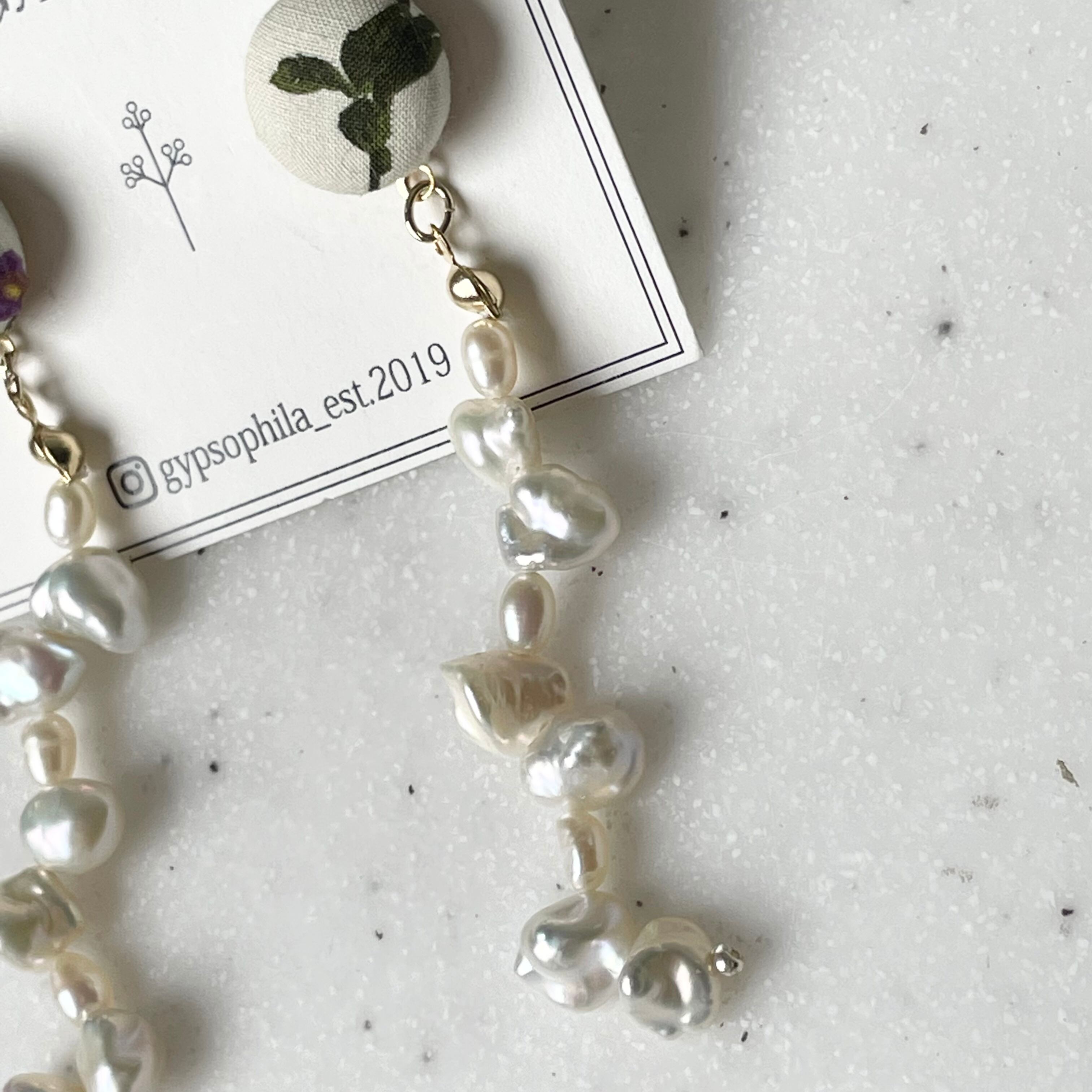 ◇ピアス、イヤリングはファブリックを使用したクルミボタンでアクセサリーを作成しています。