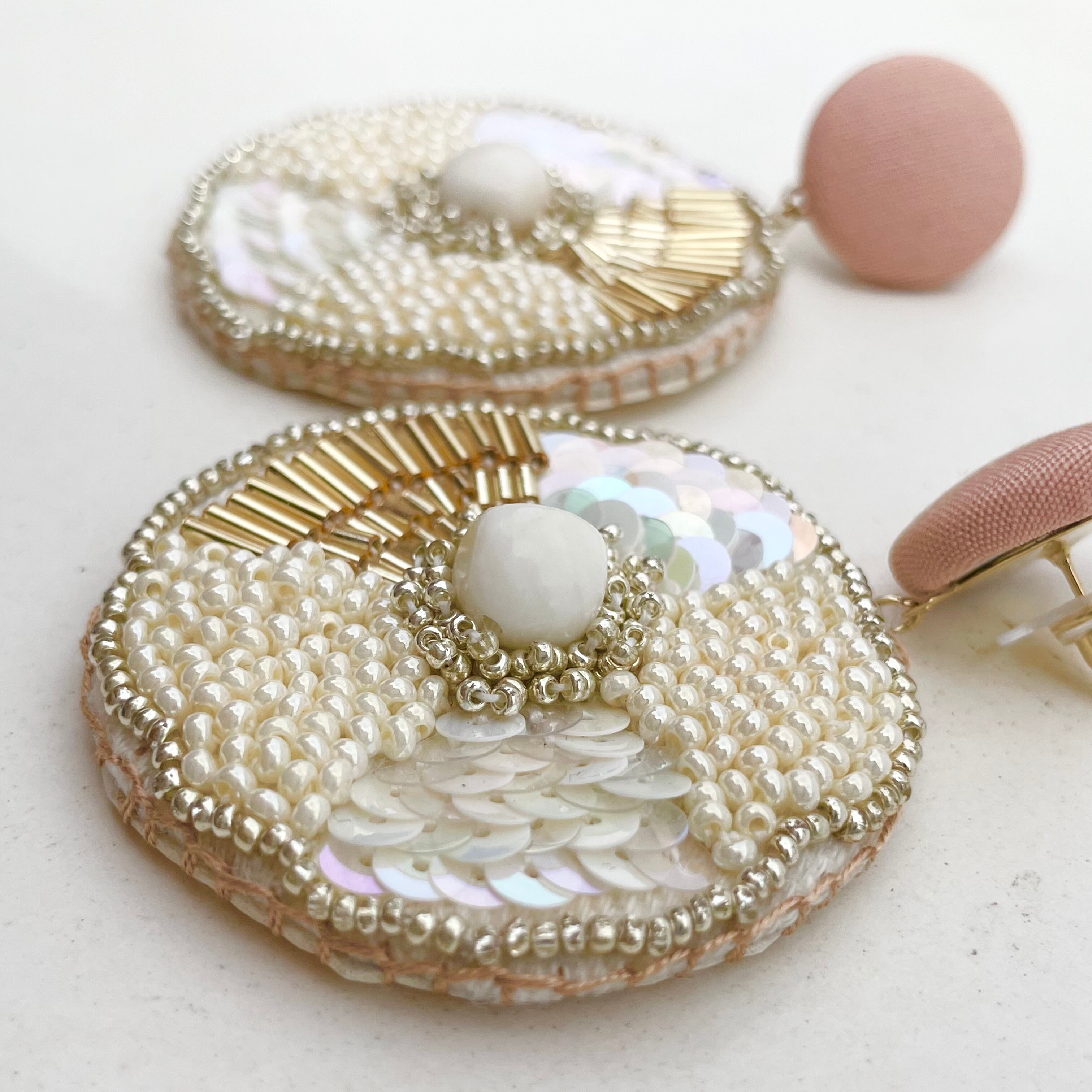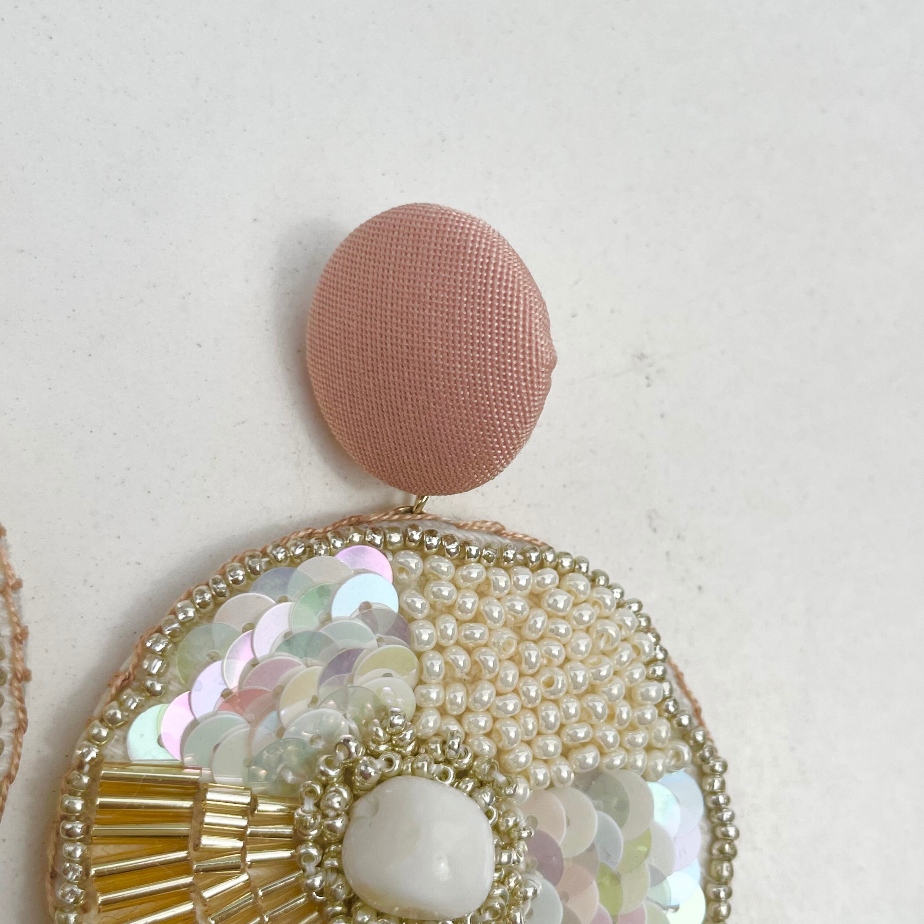 ◇ピアス、イヤリングはファブリックを使用したクルミボタンでアクセサリーを作成しています。