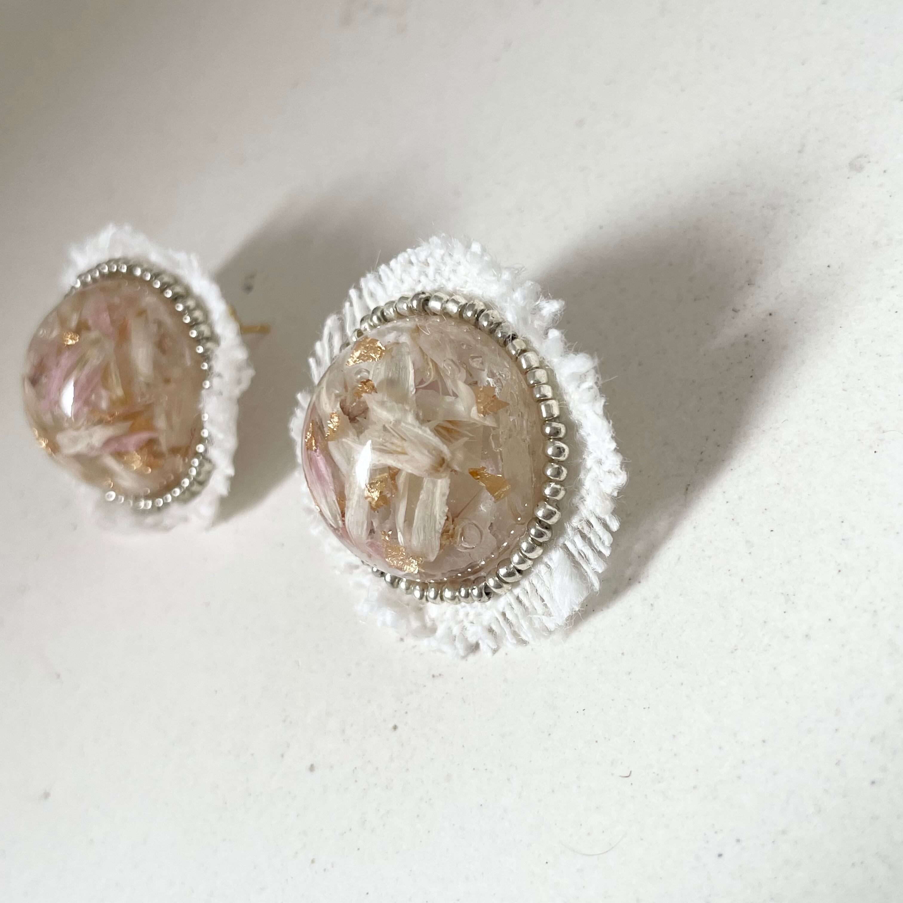 不要になったリネンのファブリックと組み合わせた耳飾り。