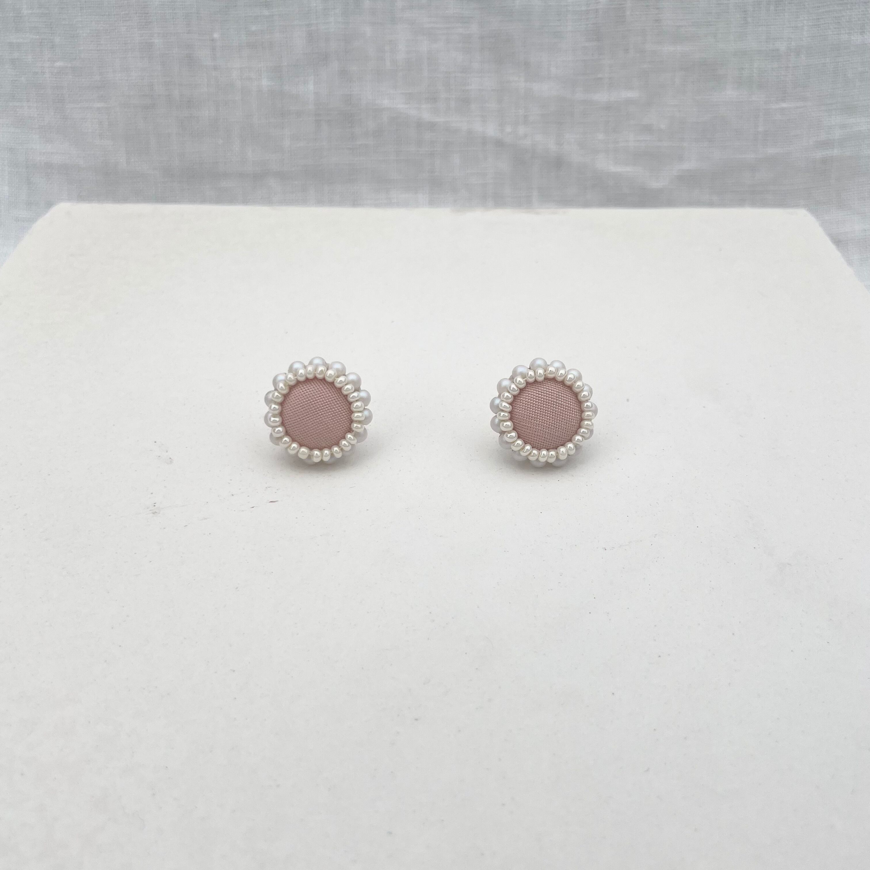 ◇ピアス、イヤリングはファブリックを使用したクルミボタンでアクセサリーを作成しています。