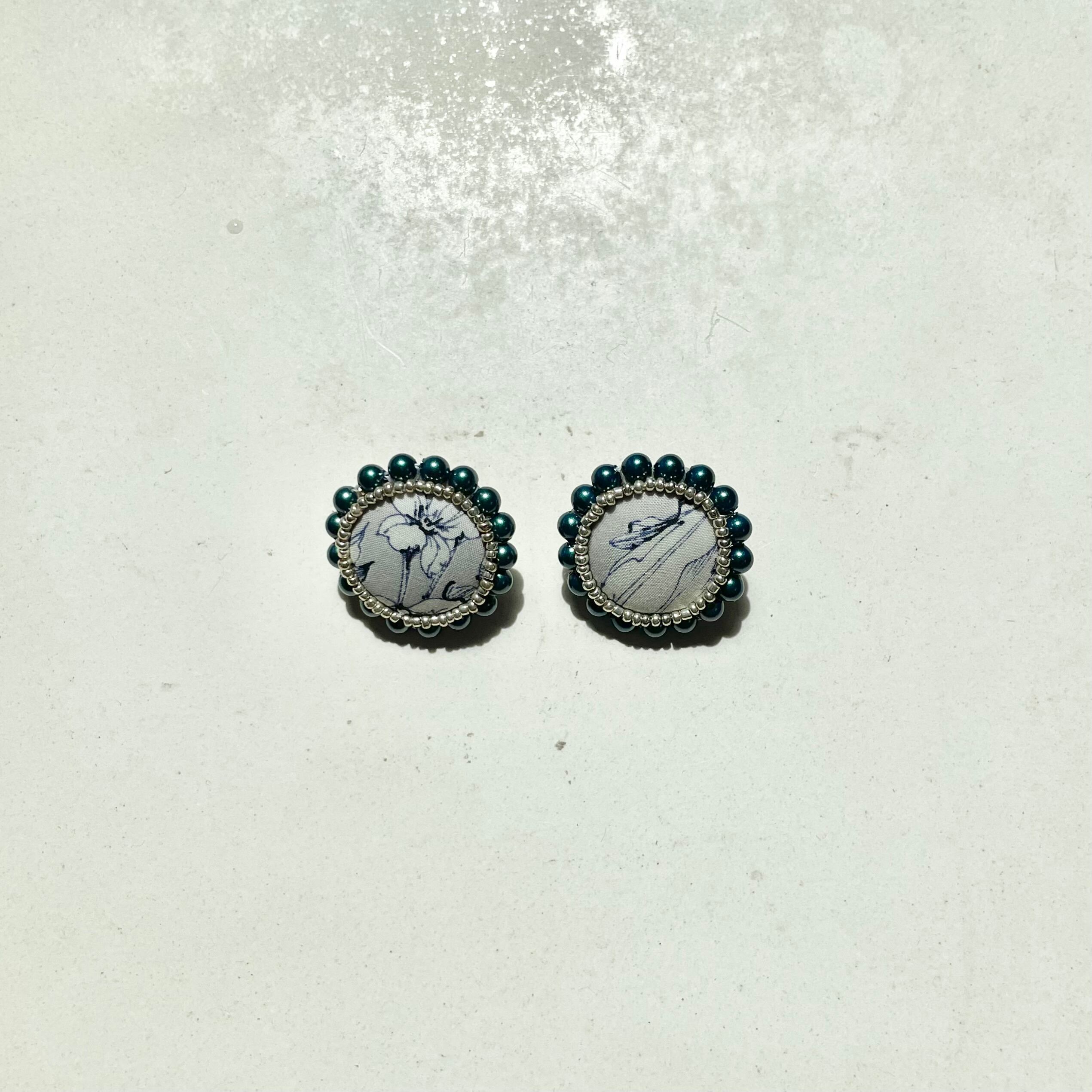 ◇ピアス、イヤリングはファブリックを使用したクルミボタンでアクセサリーを作成しています。