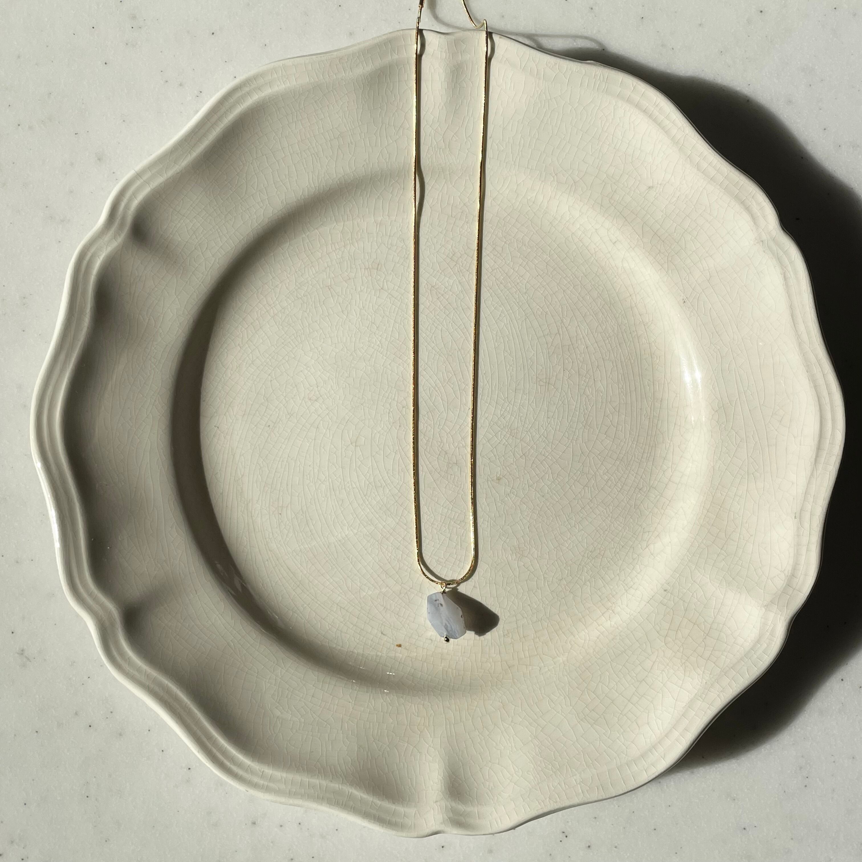 アンニュイな雰囲気のある天然石ブルーレースアゲートを一粒ペンダントトップに使用した、
