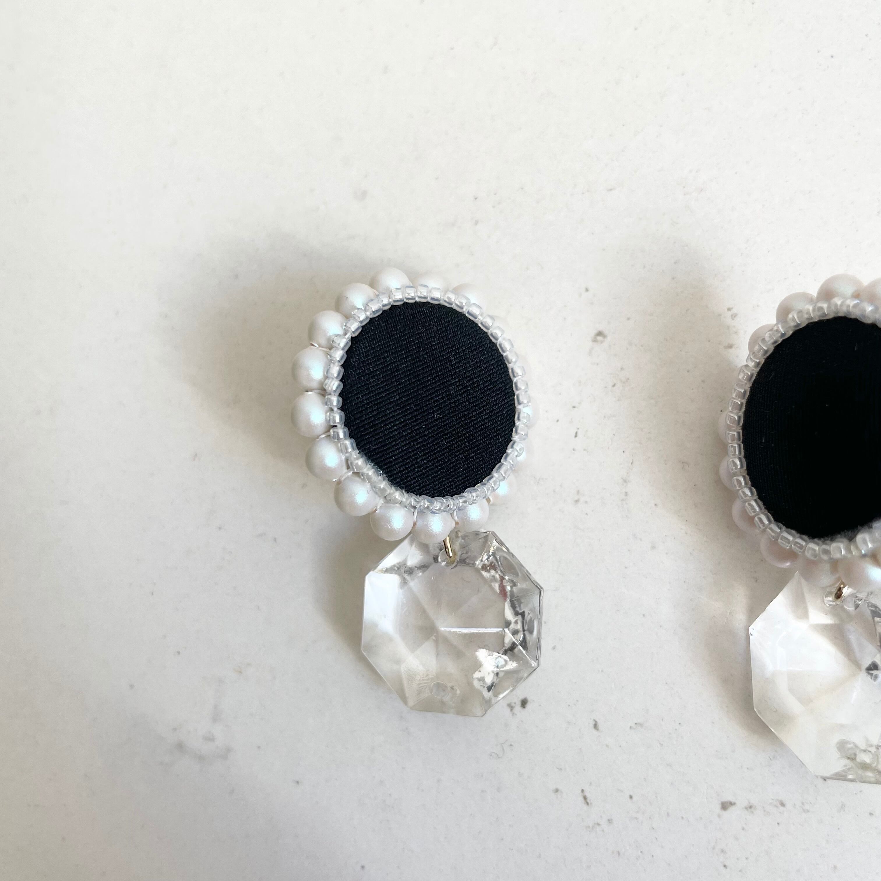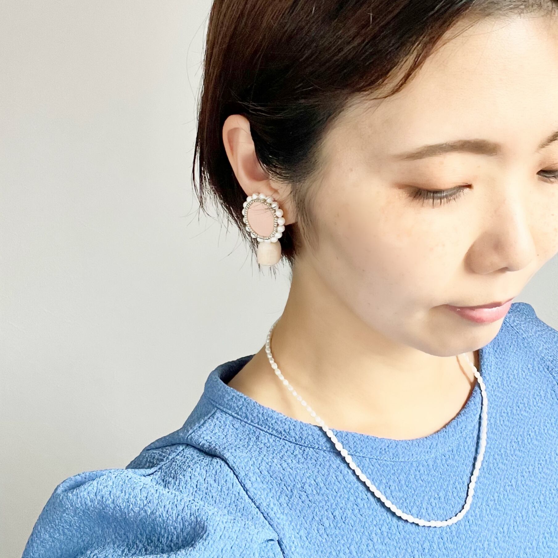◇ピアス、イヤリングはファブリックを使用したクルミボタンでアクセサリーを作成しています。