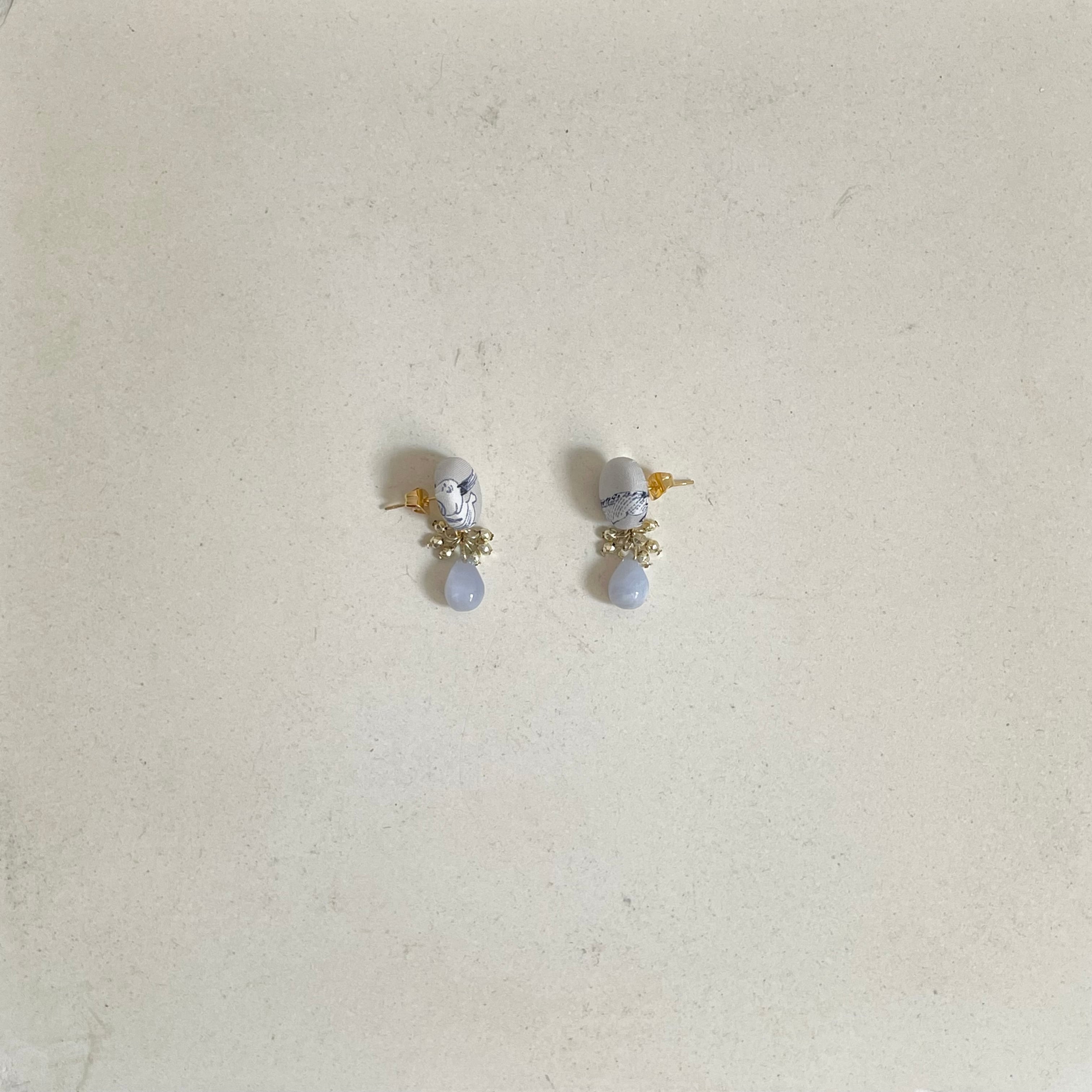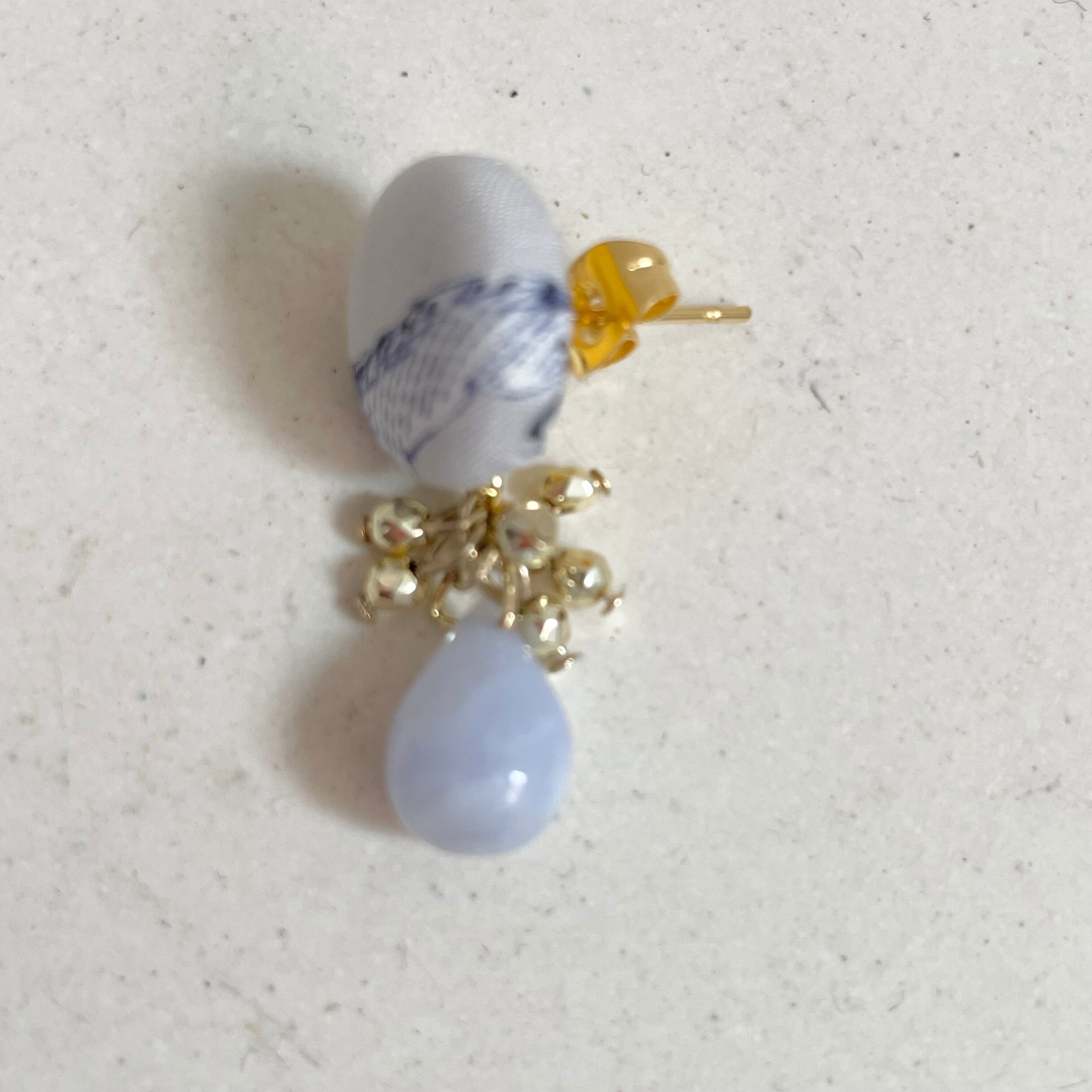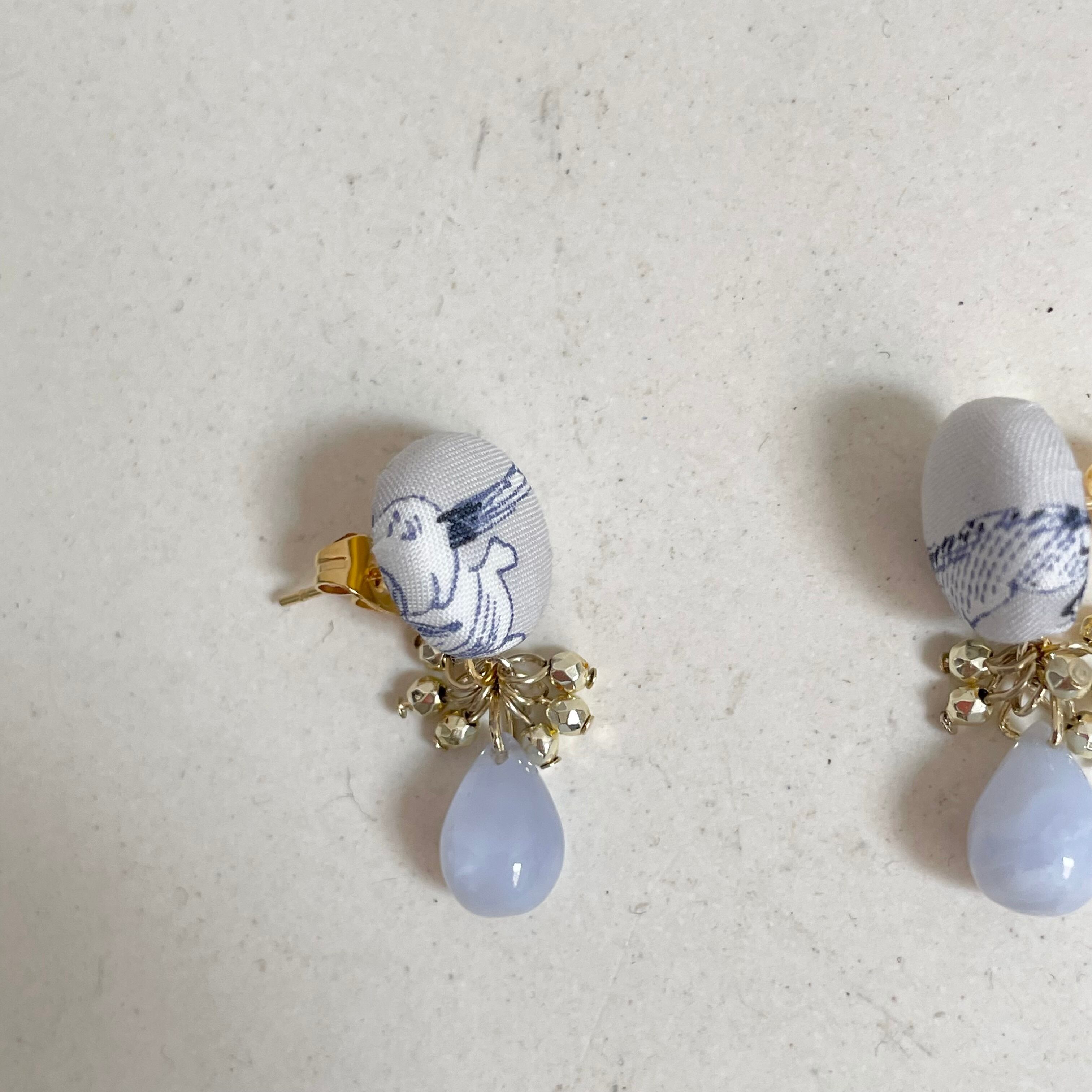 華やかなブルーのクルミボタンにしずくがたのwブルーレースを組み合わせてみました。