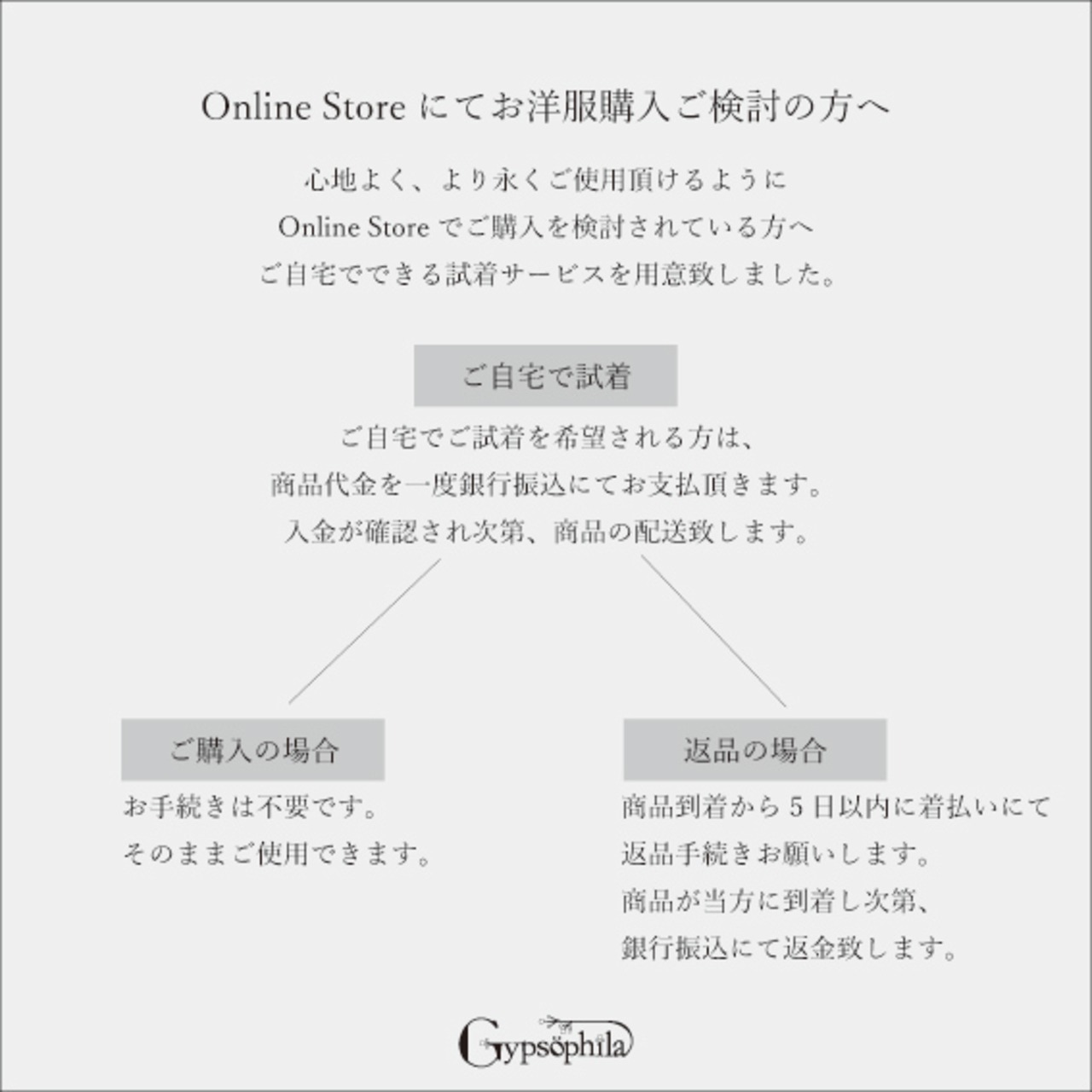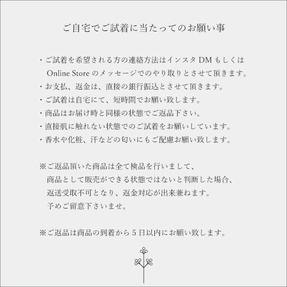 ご自宅でご試着をご希望の場合は購入前にご一報くださいませ。