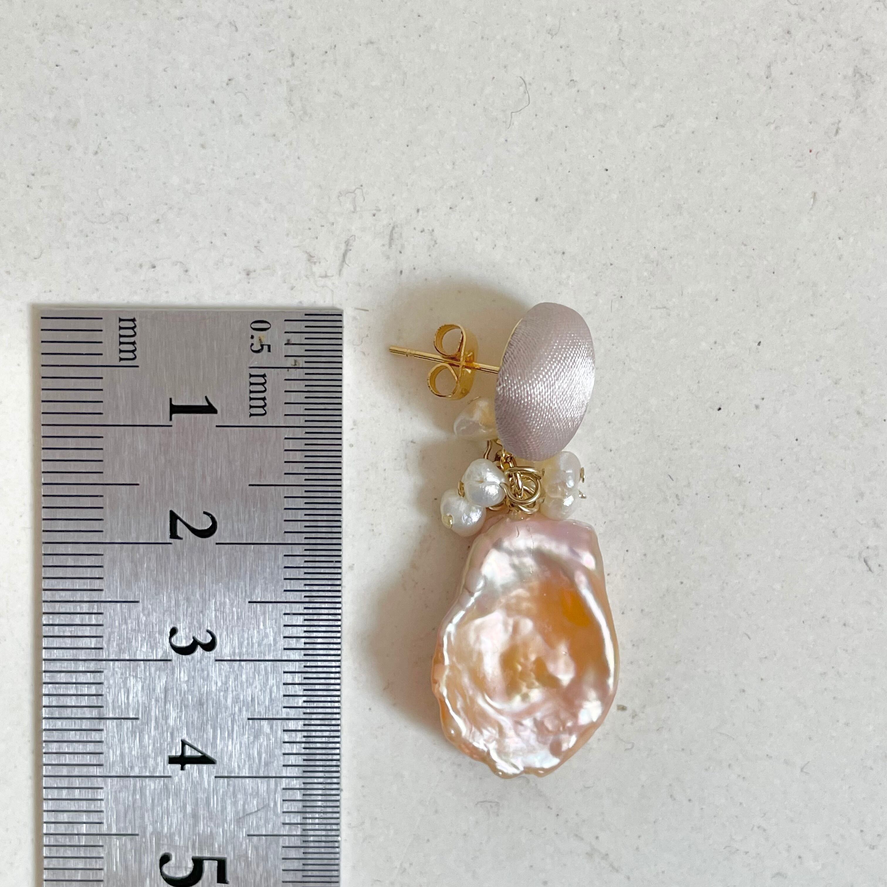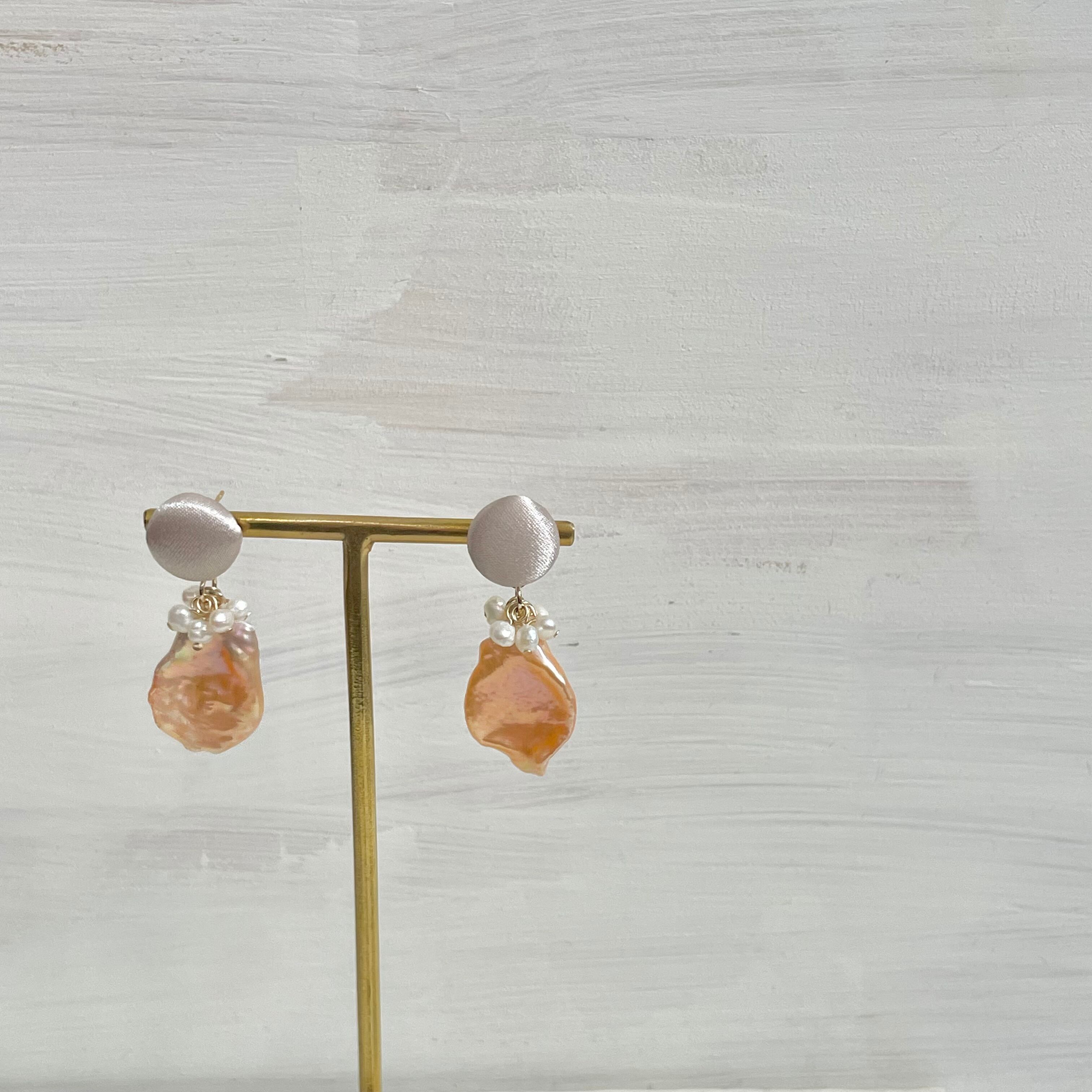 大粒の花びら型の淡水パールと小粒ちゃんを組み合わせました。
