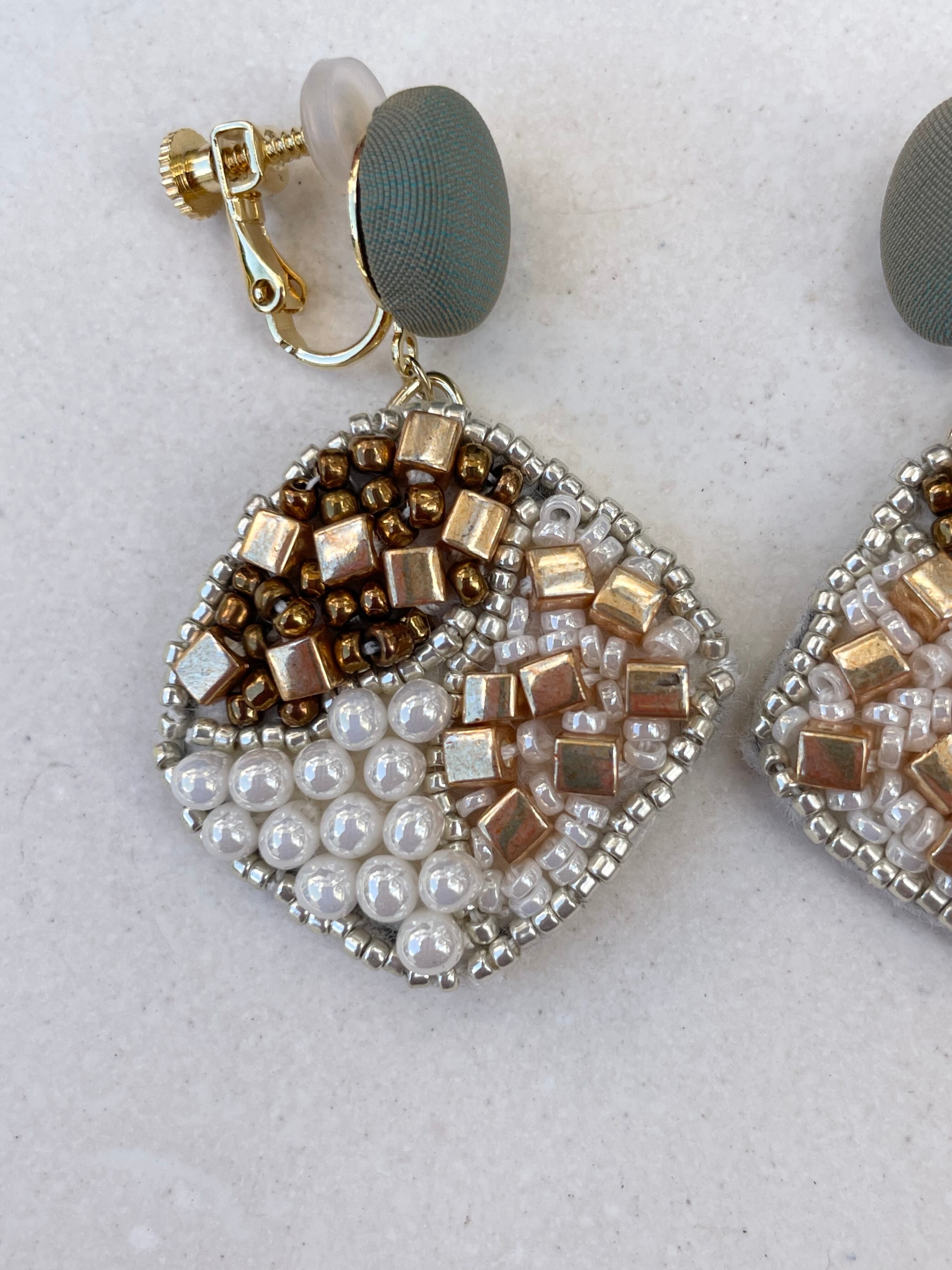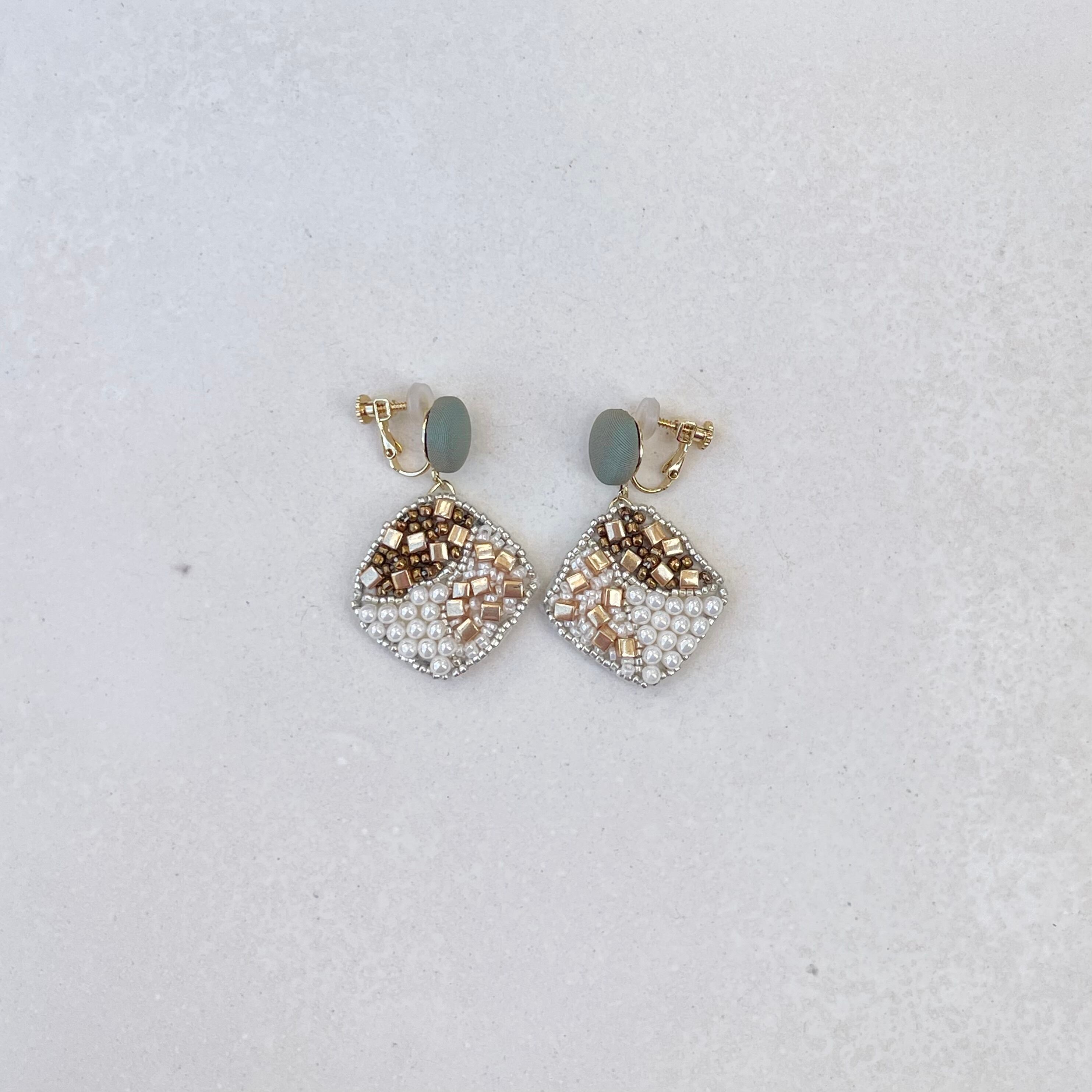 ミルクチョコレートのようなおいしそうな色合いのビーズモチーフを組み合わせてみました。