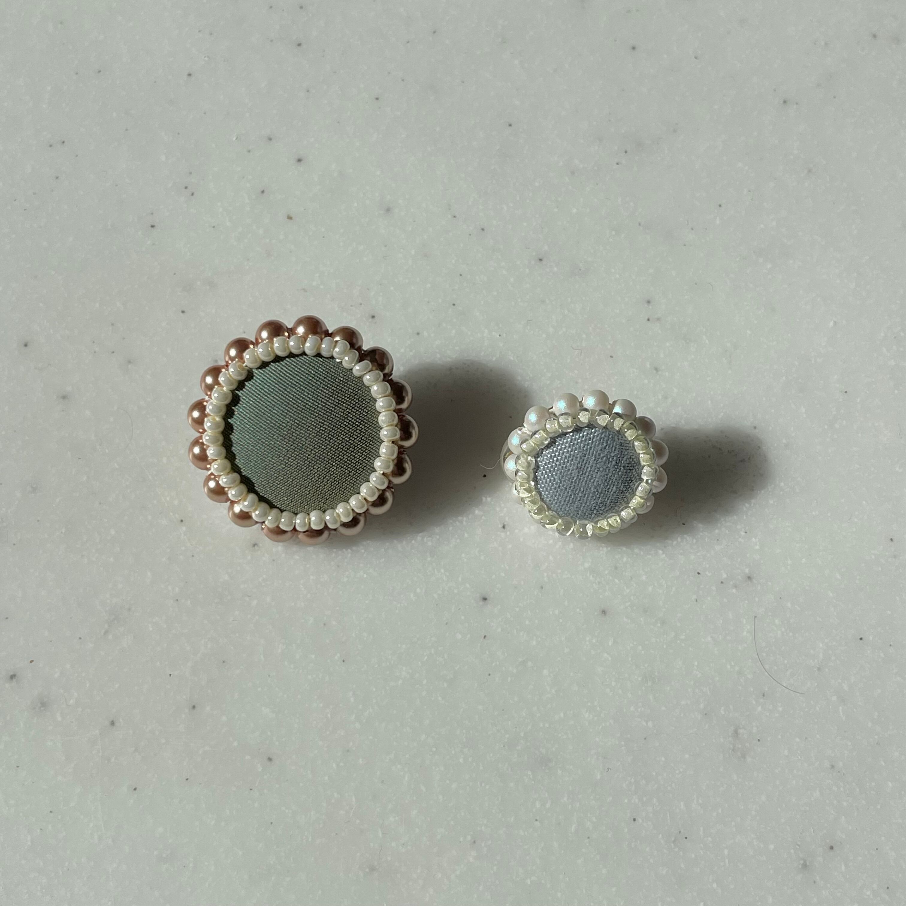 ◇ピアス、イヤリングはファブリックを使用したクルミボタンでアクセサリーを作成しています。